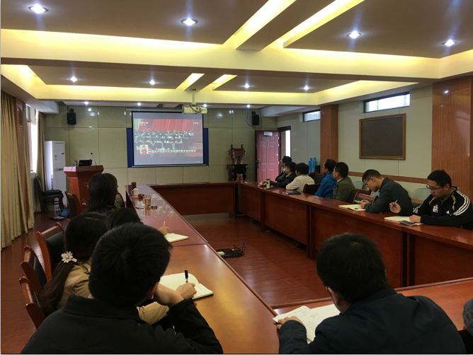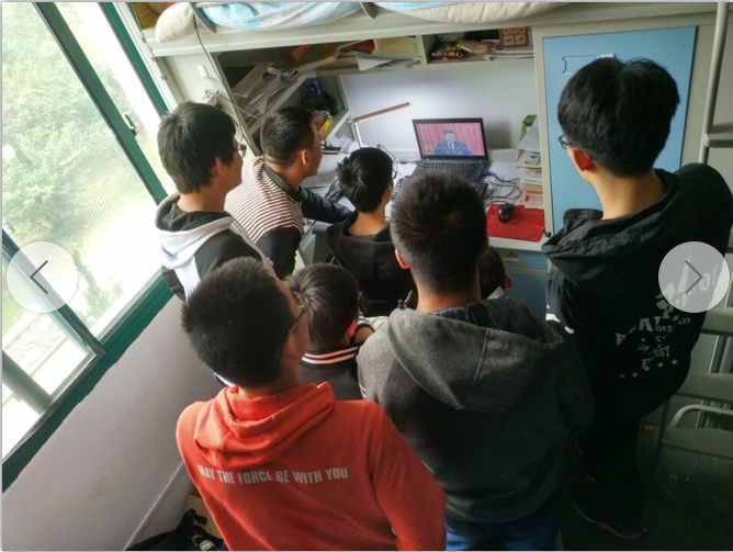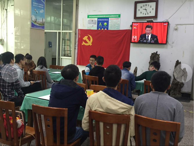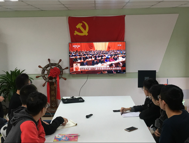 本次活动以“喜迎十九大、共圆中国梦”为主题,做到“一全两多”,即:师生全覆盖,形式多样化、场所多样化,组织了教工党支部、“研习社”党支部分别在党员活动室、材料楼综合报告厅,各年级学生党支部、各班级所有同学分别在食堂和寝室收看直播。