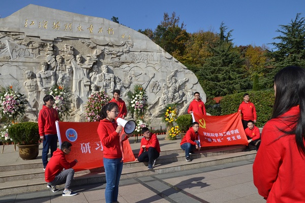 “研习社”换届大会在烈士陵园纪念碑前举行。党委学工部、独播库