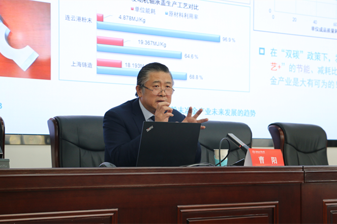 颁奖仪式结束后,曹阳以“中国粉末冶金产业未来发展的趋势”为题,用详实的数据和图表深度讲解了中国粉末冶金的生产工艺、市场状况和发展方向,展现了粉末冶金在零部件生产以及高新科技产品中的重要地位。同时他也表达了对广大材料学子的殷切期盼,鼓励青年大学生树立远大理想,强化学习意识和奉献精神,争做新时代行业的领头羊,为实现中华民族伟大复兴贡献出自己的一份青春力量。