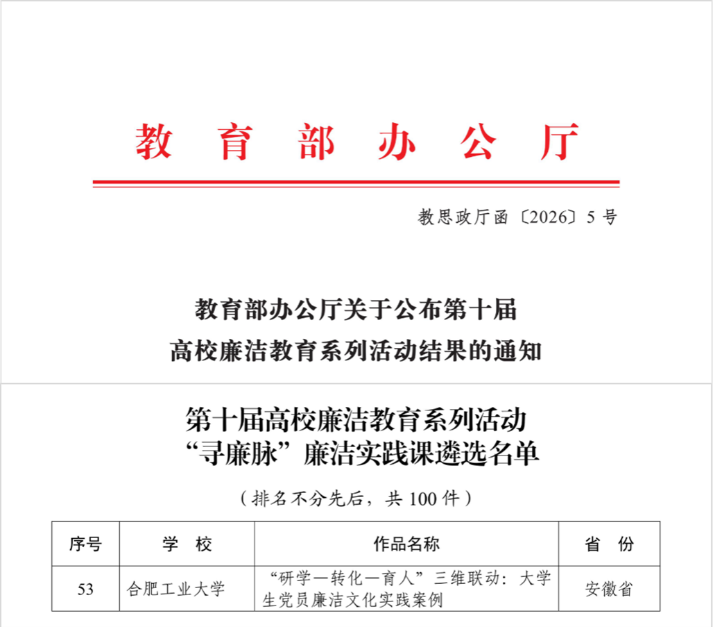 作品《“研学—转化—育人”三维联动:大学生党员廉洁文化实践案例》成功入选“寻廉脉”廉洁实践课遴选名单。