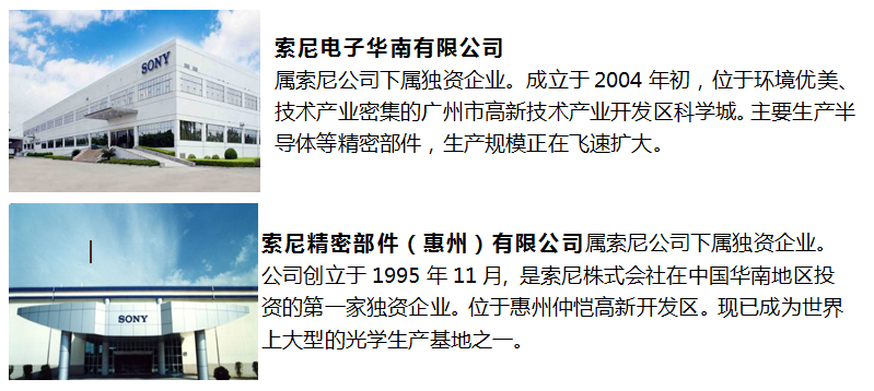 2、索尼精密部件(惠州)有限公司