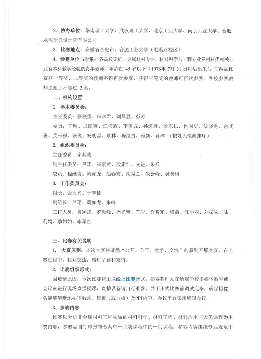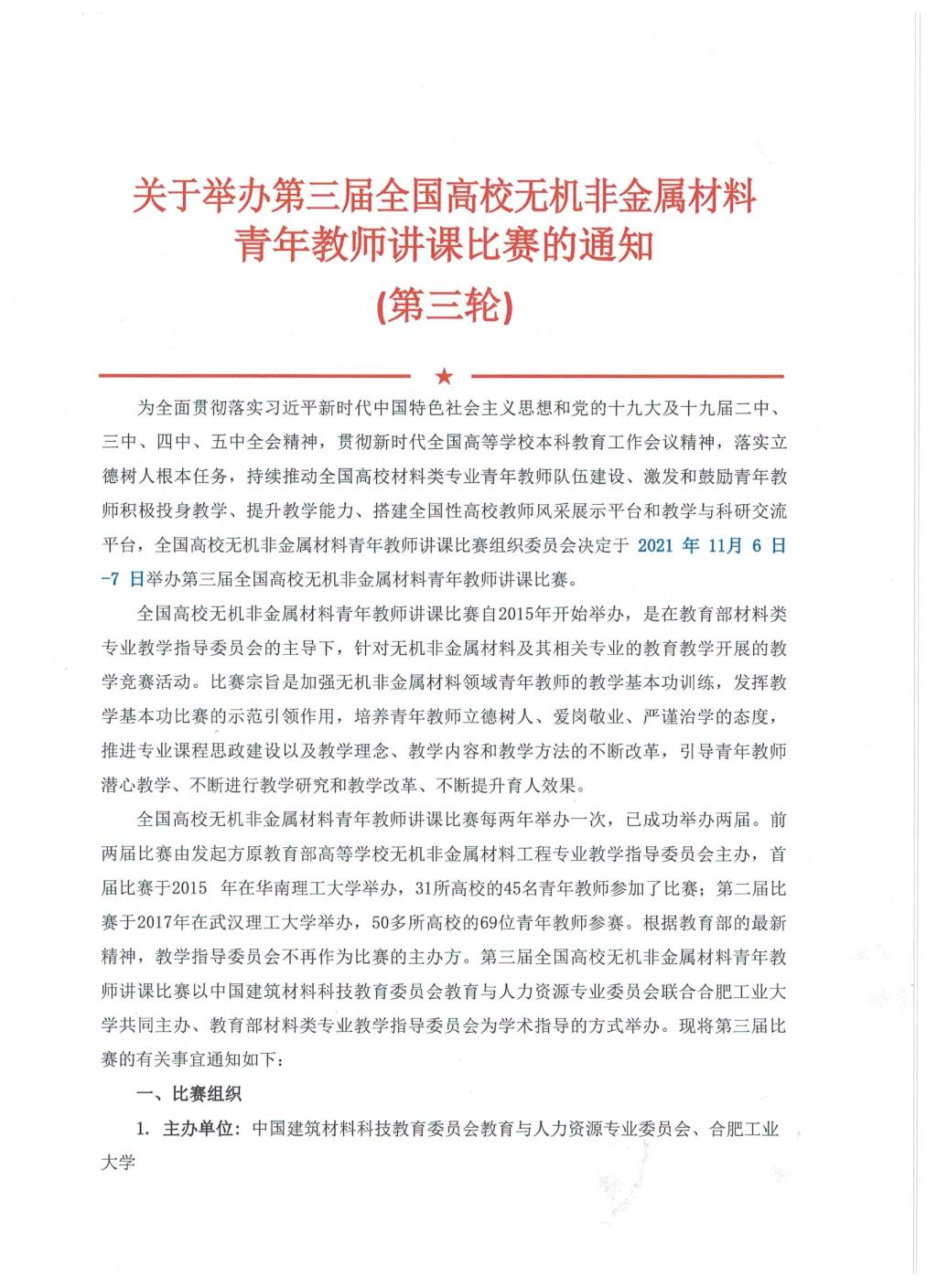 关于举办第三届全国高校无机非金属材料青年教师讲课比赛的通知(第三轮)