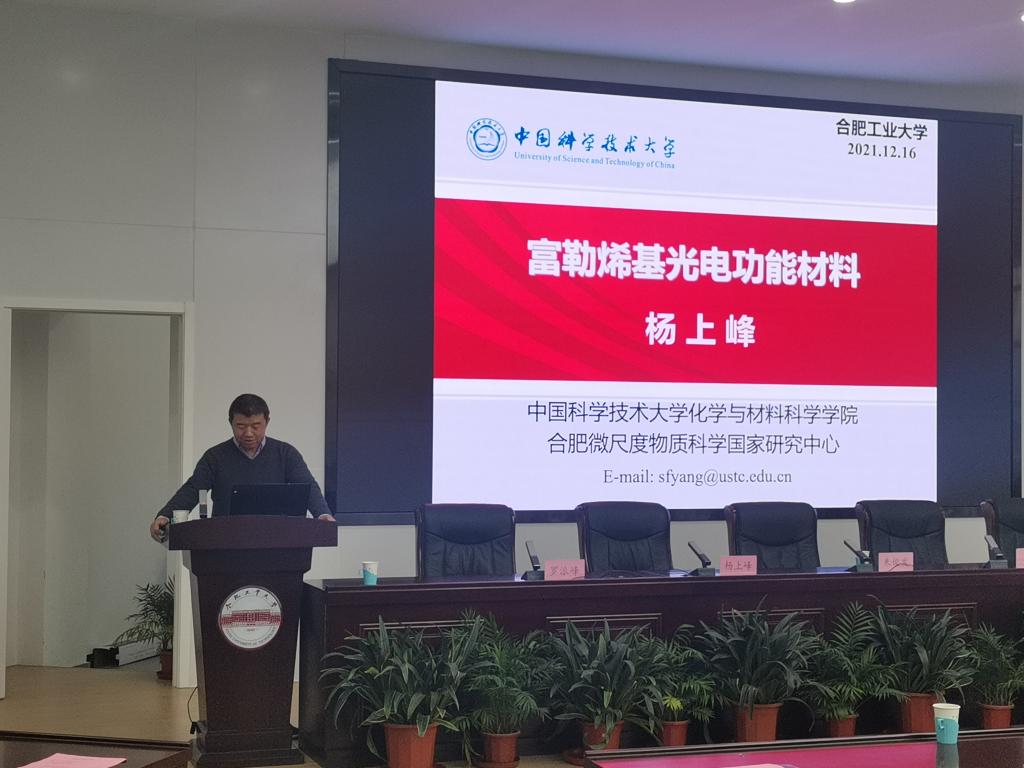 12月16日上午,独播库 举办研究生学术交流年系列报告会,国家杰出青年基金获得者、英国皇家化学会会士、中国科学技术大学杨上峰教授应邀,为师生带来一场题为“富勒烯基光电功能材料”的学术报告,学院党委书记吕珺主持会议。