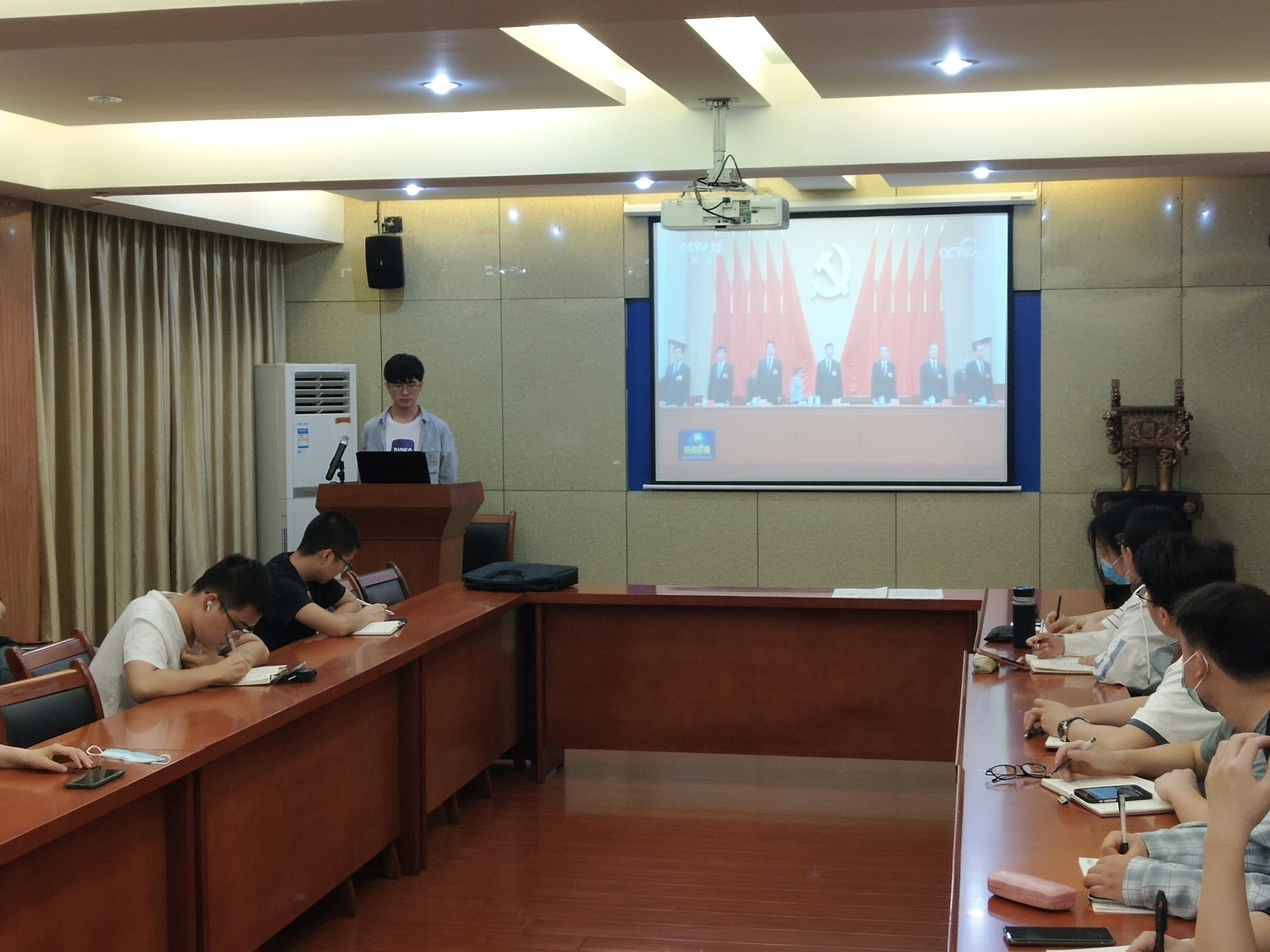 4月27日晚,独播库 党校第67期预备党员班学员在材料楼多功能会议室开展了“学习贯彻十九届六中全会精神,从党的百年奋斗中汲取智慧力量”专题研讨活动,学院党校第67期预备党员班班主任、全体学员线上线下参与本次活动。