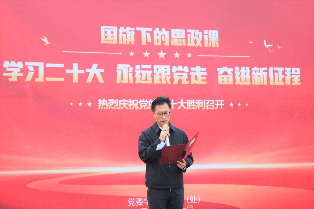 本次“国旗下的思政课”是学习宣传贯彻党的二十大专项行动的系列活动之一。活动旨在激励同学们坚定不移听党话、跟党走,怀抱梦想,脚踏实地,敢想敢为,善作善成,立志做有理想、敢担当、能吃苦、肯奋斗的新时代好青年,让青春在全面建设社会主义现代化国家的火热实践中绽放绚丽之花!