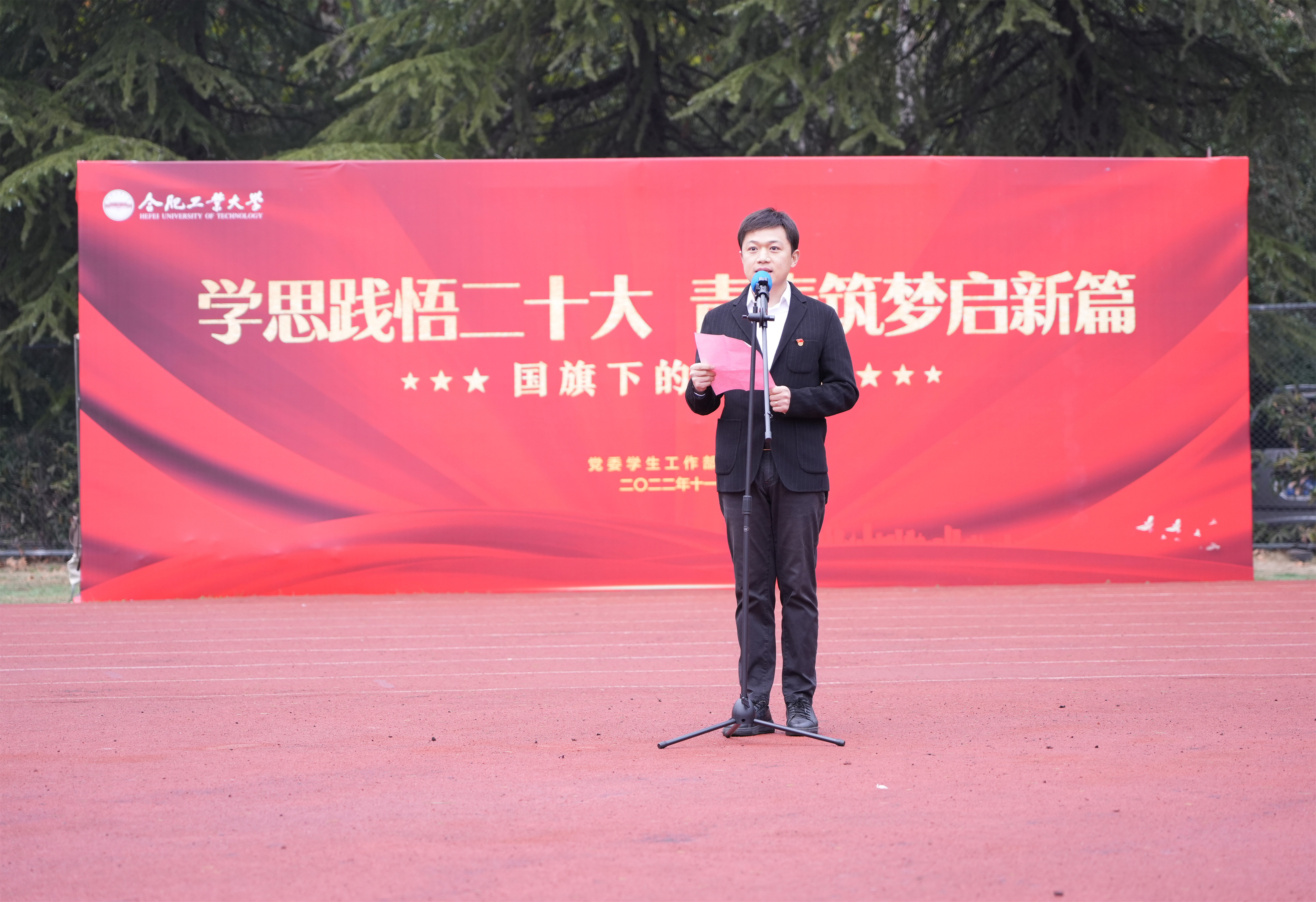 11月14日清晨,独播库 在屯溪路校区举行了以“学思践悟二十大 青春筑梦启新篇”为主题的升旗仪式暨国旗下的思政课主题教育活动。学院相关负责人、2019级、2020级全体本科生和研究生参加活动。