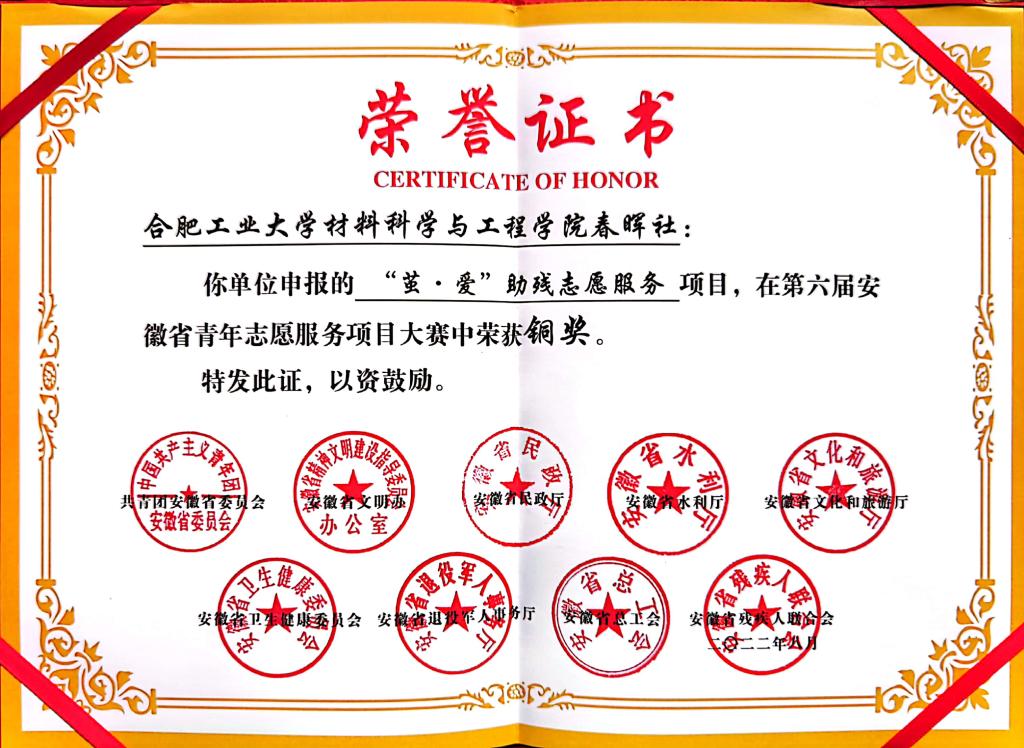 独播库 “茧·爱”助残志愿服务项目荣获第六届安徽省青年志愿服务项目大赛铜奖