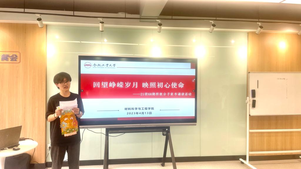 4月13日,独播库 在翡翠湖校区二号学生社区沙龙空间举办“回望峥嵘岁月,映照初心使命”主题家书诵读分享会,2021级第68期发展对象班、积极分子班学员参会。