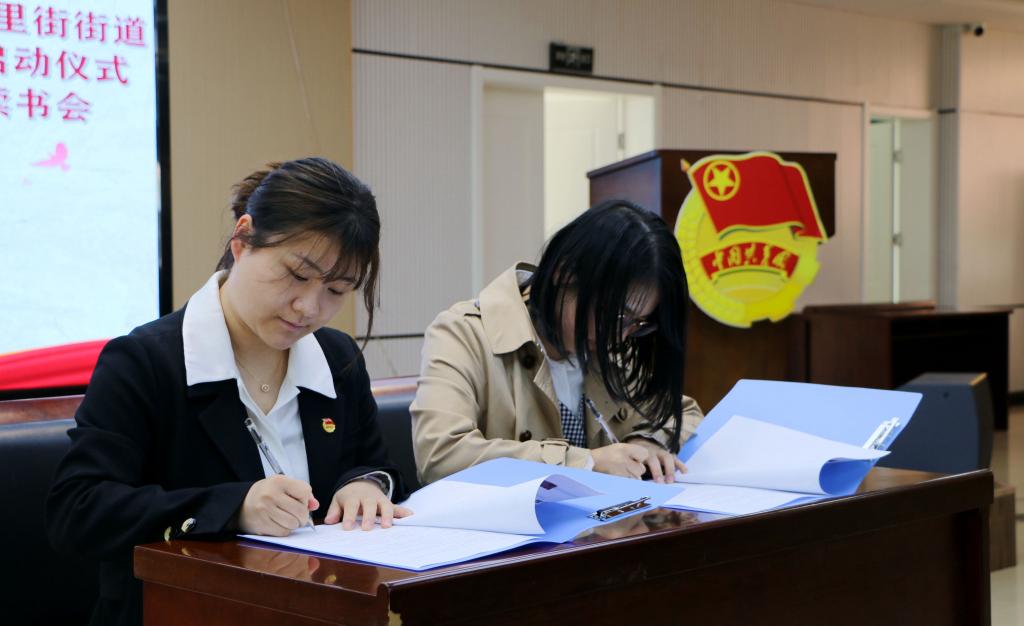 启动仪式上,双方就独播库 “第二课堂”教育实践示范基地进行了揭牌仪式,同时,学院与三里街街道团工委签署共建协议,学生马翊轩代表进行发言。