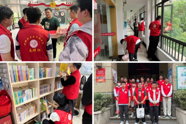 在云川社区中心工作人员的指导下,分成数个小组,各自负责一定区域的清扫工作。有的同学负责社区玻璃的清洗工作,有的负责桌椅板凳清洁工作,有的则负责图书整理工作,同学们各司其职,不怕苦,不怕累,干劲十足。为了更好地发挥我们的力量,同学们也不时进行小组间的交流,互相分享经验和技巧,不断完善工作。