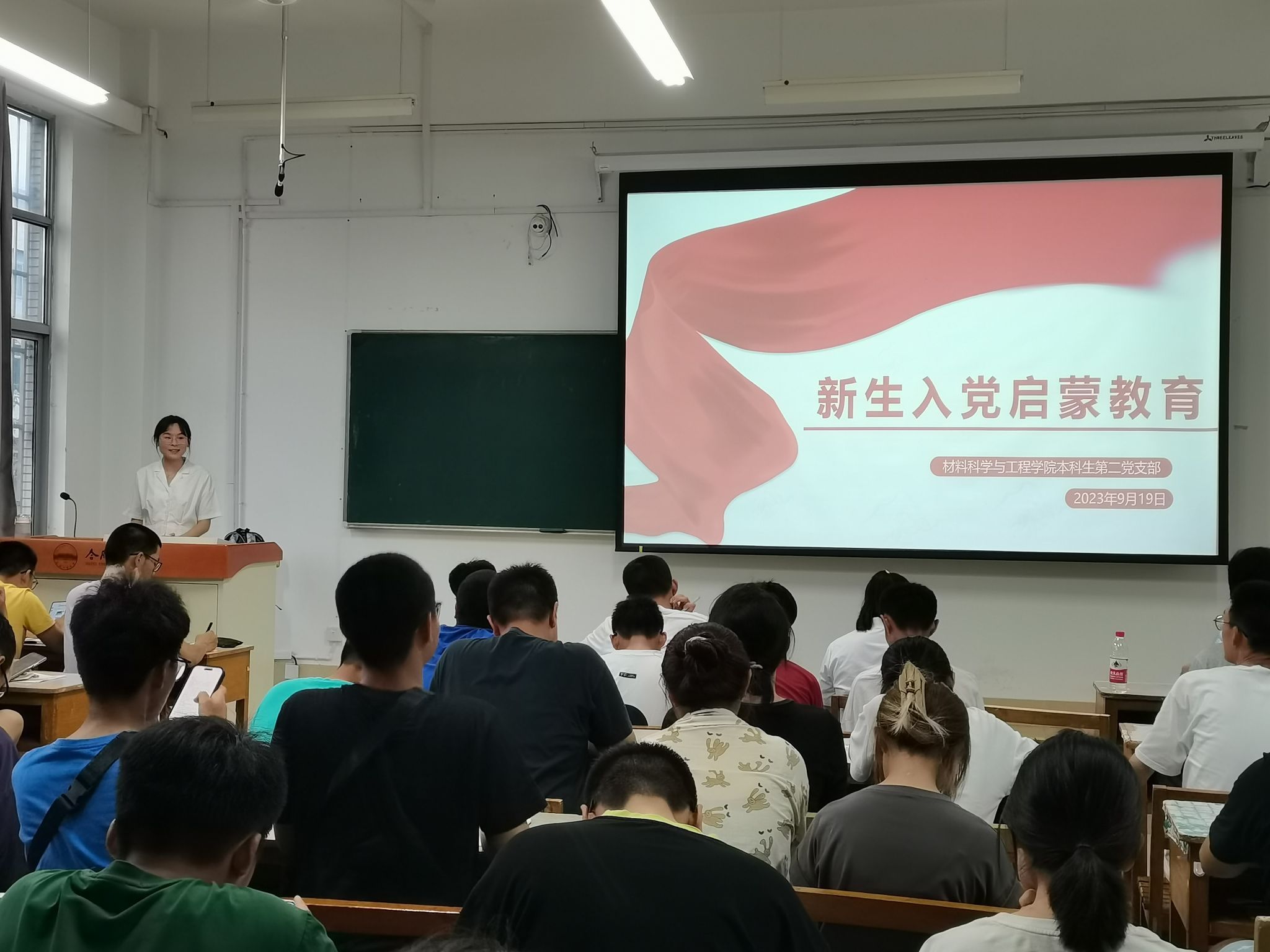 在翡翠湖校区教学楼开展了“请党放心,强国有我”新生入党启蒙教育宣讲活动。学院相关负责人、本科生党支部宣讲团、2023级全体本科生参加本次活动。