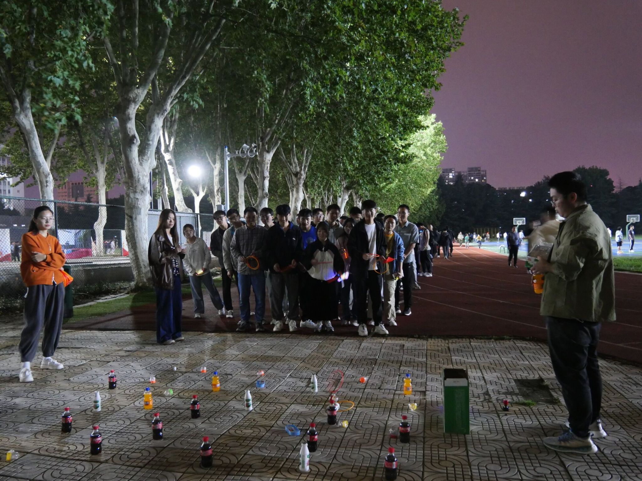 、管理学院、电气学院和机械学院的学生积极参与。活动现场布置了各种荧光装饰和灯光效果,参与者们纷纷穿戴荧光服饰并获得荧光手环等装饰品,营造出富有活力和欢乐的氛围。本次活动共设计5个关卡,要求每一组参赛队伍通过这5个关卡,每通过一个都有相应的工作人员进行盖章,集齐5枚章后才算完成本次活动。