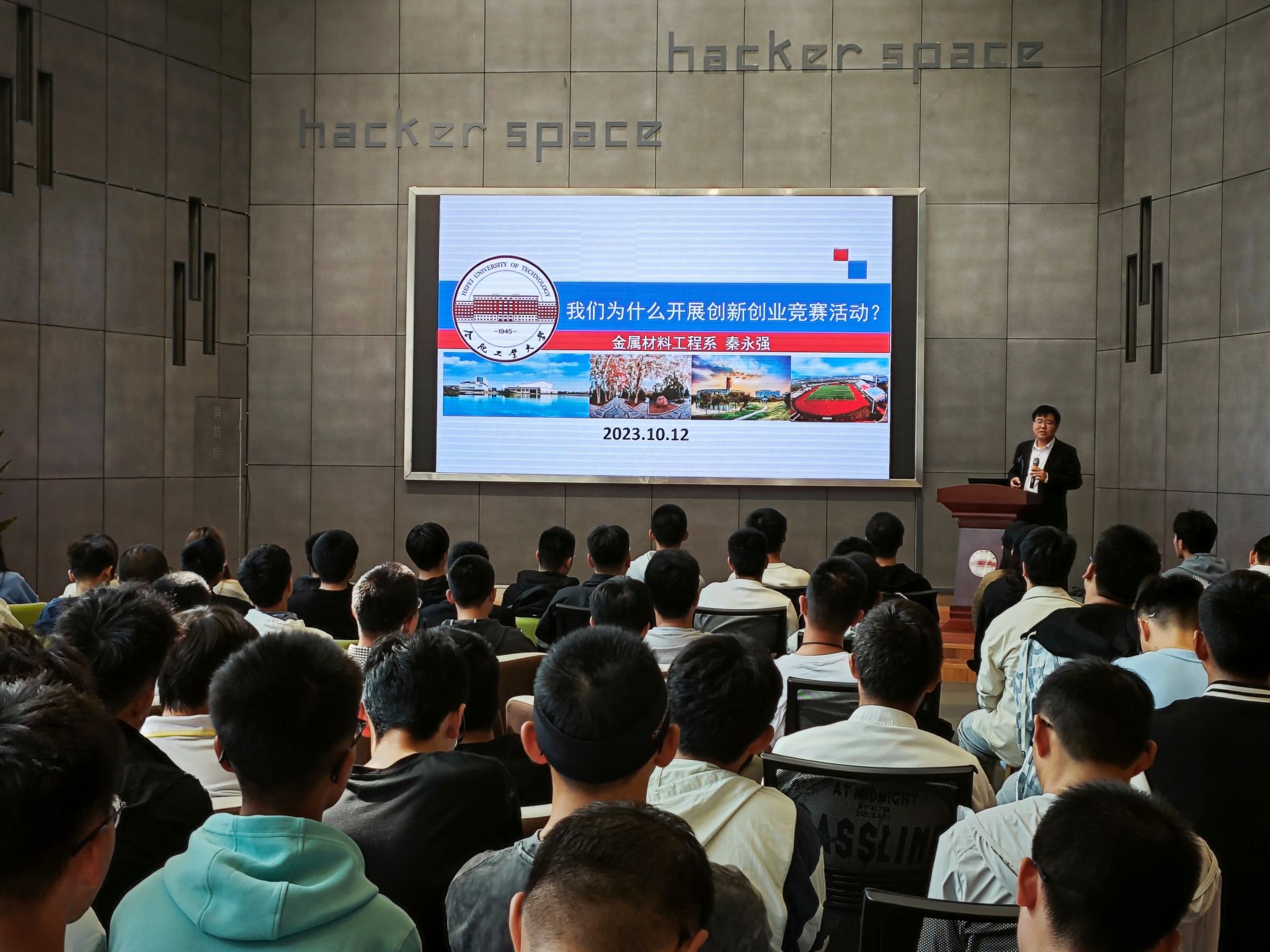 双创教育掠影宣传片。紧接着金属材料工程秦永强老师结合学校第二课堂成绩单制度中科技创新板块为所有同学讲授了关于金属材料工程专业相关创新创业与学科竞赛项目,同学们纷纷表示受益匪浅。
