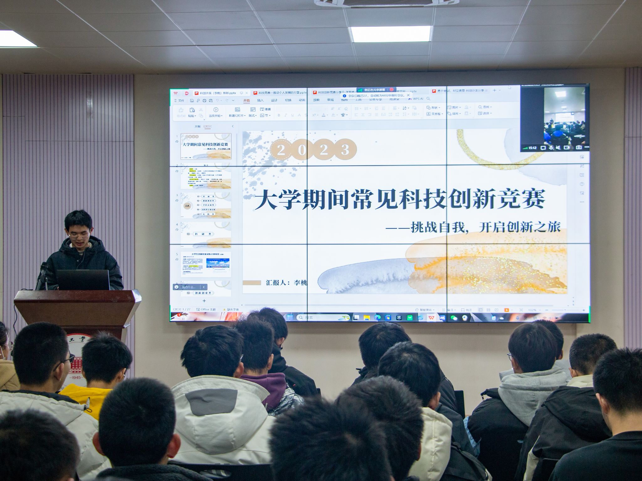 为进一步提升大学生创新创业意识,培养学生科技创新能力,12月18日晚,独播库 于翡翠湖校区综合楼一楼多功能报告厅举办“挑战自我,开启创新之旅——大学期间常见的科创竞赛”主题沙龙活动,学院80余人参与本次活动。