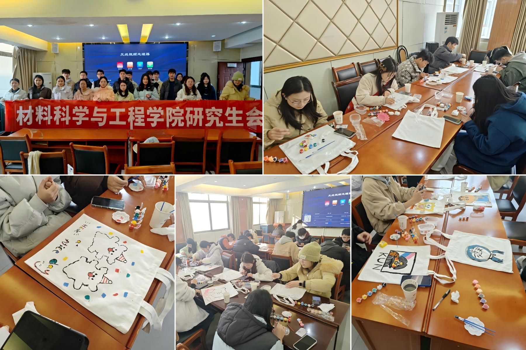 本次活动吸引了学院20余名研究生参加,活动现场温馨舒适,充满创意氛围。活动中,学院研究生会工作人员向同学们介绍了活动内容,详细讲解DIY手工帆布包和石膏娃娃制作手法,并为同学们准备了丰富多彩的颜料,画笔,调色板等材料。同学们在活动现场一边制作,一边讨论创意,展现出丰富的想象力和创造力,感受颜料在手中的奇妙变化,体验创作的魅力。活动氛围团结融洽,同学们互帮互助,带着满满的欣喜和自豪,分享收获的快乐,畅谈作品寓意与所感所悟。活动的参加者们纷纷表示,这次手工DIY活动十分有意义,不仅放松了心情,减缓了科研压力,还学到了很多手工技巧,收获了满意的作品。