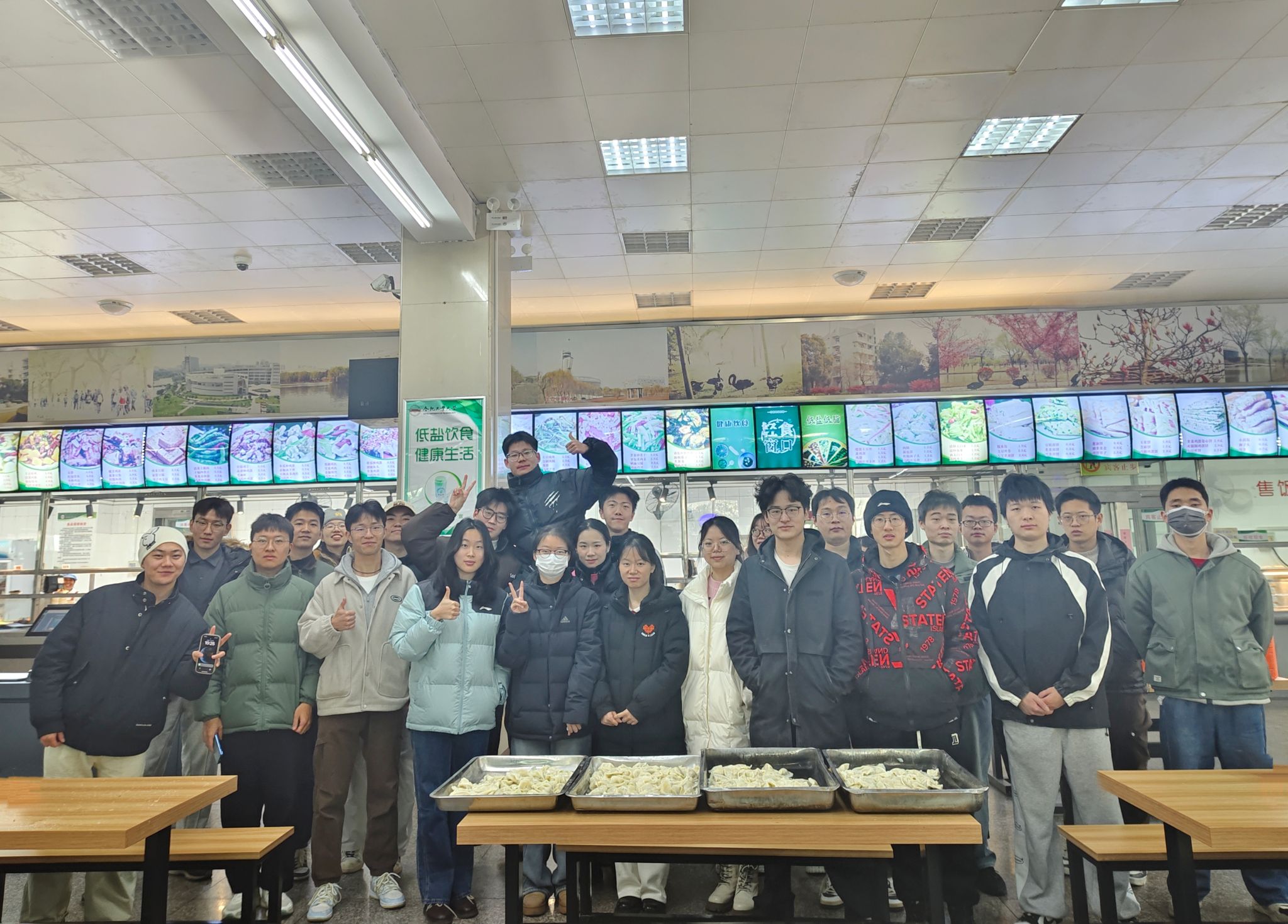 随后,同学们三到五人为一组,食堂工作人员给每组分发饺子皮和馅料,由同学们自行包饺子。虽然很多同学都是初次尝试包饺子,手法略显生疏,但每个人都乐在其中,不时传来欢声笑语。不少同学还发挥创意,尝试包出不同形状和图案的饺子,让这场活动更添趣味性和创新性。大家在包饺子的过程中,不仅学习到了包饺子的技巧,还交流了各自的家乡习俗和冬至的庆祝方式,增进了相互之间的了解和友谊。经过一个多小时的努力,随着一盘盘热气腾腾的饺子端上桌,同学们围坐一起,共同品尝自己的劳动成果。饺子的香味和同学们的欢声笑语交织在一起,营造出了浓厚的节日氛围,让远离家乡的研究生们感受到了家的温暖。