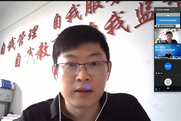 邀请京东方科技集团人才确保中心华东招聘部部长洪光东在腾讯会议平台作《职业生涯专题讲座》,学院2017级全体同学参加讲座。