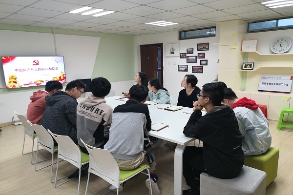 (屯溪路校区)党员班2016级学员于材料楼辅导员工作室开展了第一次集中学习讨论活动,顾茜同志带领全体学员对共产党人的初心和使命进行了学习,并观看了视频《共产党人的初心和使命》。