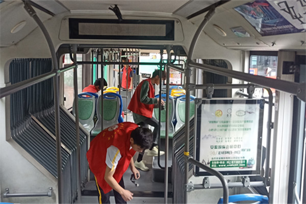 到达公交站后,车辆已排得整整齐齐,正等着他们去擦洗。随后,在工作人员的指导下,他们开始了有序的清洁活动。进进出出的流水作业车辆一辆接着一辆,中间丝毫没有歇息的时间,不一会功夫总站台旁边的公交车挤满了公交站,但志愿者们丝毫没有懈怠,在站内清洁人员的带领下他们打扫的不亦乐乎,从地面到座位,从车窗到扶手,每一个角落大家都认真打扫和清理,两个小时的清洁活动一眨眼间就过去了,他们用自己双手为旅客们营造了美好的公交乘车环境,使得炎热的夏天显得各外清凉。
