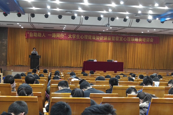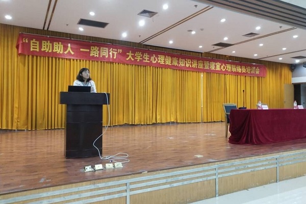 在翡翠湖校区图书馆报告厅举行了“自助助人,一路同行”大学生心理健康知识讲座暨寝室心理联络员培训会。