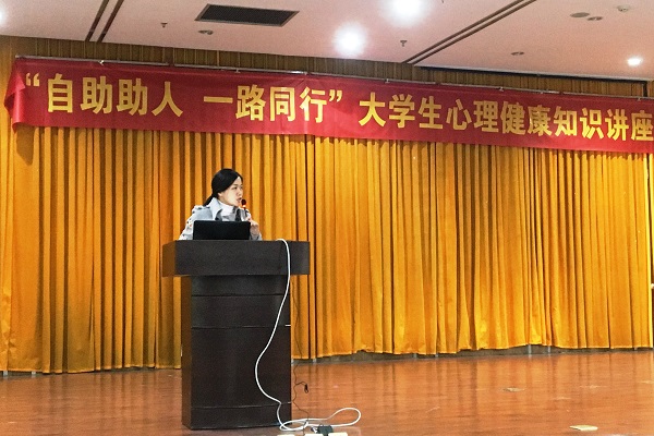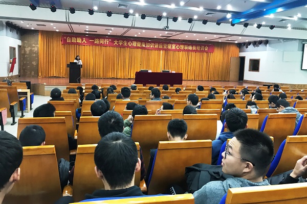 在翡翠湖校区图书馆报告厅举办“自助助人·一路同行”大学生心理健康知识讲座暨心理联络员培训会。独播库