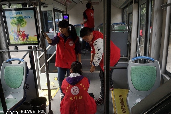 陈志浩同学说到:“清洁公交车的过程虽然感觉很辛苦,但是看到一辆辆干净整洁的公交车驶出站台,自己内心感到无比的快乐与舒心,希望更多的人能够参与志愿服务活动,人人奉献爱心,社会将会变得越来越和谐美好。”