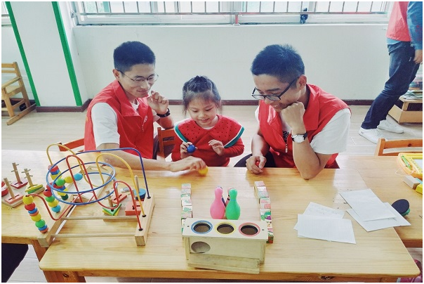 到达康复中心后,志愿者们一个个相互配合,有序打扫教室,摆放好桌椅,为接下来的“小课堂”活动营造一个舒适干净的环境。在孩子们陆续到达现场后,志愿者们亲切的招呼孩子们纷纷就坐,经过短暂的互动聊天环节之后,志愿者与孩子们建立了良好的友谊关系,使得后续的“一对一”辅导教学活动得以顺利开展。课堂辅导教学过程中,志愿者们根据孩子的兴趣和喜好制定了形式各异的教学辅导课程。课间休息时间,志愿者为孩子们播放了精心准备的动画片,趣味游戏活动让孩子们稚嫩的笑声响彻教室。4个小时的志愿服务活动渐渐接近尾声,志愿者们离开时,孩子们紧紧握住志愿者的手不愿松开。志愿者们认真负责的态度和对孩子们的爱心赢得了家长和康复中心老师们的一致好评。