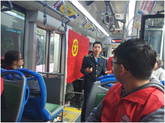 活动过程中,支部团员在团支书的带领下与车站的工作人员进行了简单的沟通交流。随后,在公交公司尹女士的带领下调研团的全体成员来到了一辆公交车上。司机师傅吴师傅主要围绕公交公司的公交线路、车辆数量、车辆型号、支付方式、交通治安等方面为我们详细讲述了226路公交线路自设立以来的巨大变化。吴师傅讲到:“226公交线路从设立之初到现在,公交线路不断地延伸和拓展,公交车的数量也急剧飙升,发车时间间隔从以前的20分钟不断缩短到了现在的5分钟,支付方式从传统的投币到刷卡再到手机支付的显著变化,合肥市的公交站台正在逐渐向BRT公交站台转型,将会实现更加快捷、便利、舒心的交通出行方式。”