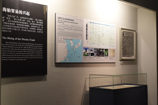 九世纪初,越窑青瓷依托明州港口经海路大量运销至亚,非各国。成为中国最早输往海外的大宗贸易商品。这条主要运送越窑陶瓷的海上航线,被誉为“海上陶瓷之路”。来往商舶极大的带动了沿线地区陶瓷业的发展。