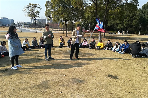 本次主题团日活动由“破冰交流”、“校园参观”和“十九大知识宣讲”三个环节组成。