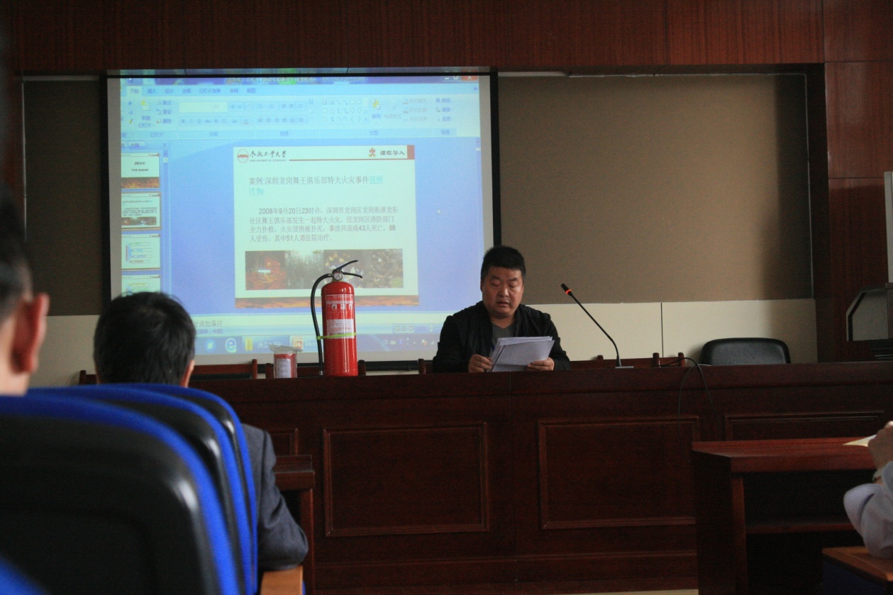 主持人首先介绍了举办这次讲座的主要目的和内容,在热烈的掌声中,校保卫办的焦峰老师上台为参加学习的研究生作了有关消防的知识普及。焦峰老师为大家讲解了基本消防安全制度,并简要介绍了相关法律法规,旨在使大家形成基本消防观念。焦峰老师结合实际案例,并配合一幅幅触目惊心的图片,一段段发人深省的视频,生动地讲解了消防安全知识,使在场同学都颇受震动;此外,焦峰老师还介绍了火灾应对措施,介绍了常规消防设施的使用方法。根据校保卫办的工作安排,独播库