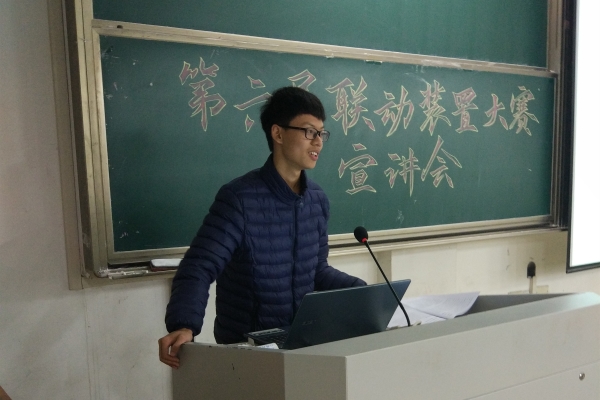 学生会科技部部长李家晨主讲。上届联动装置大赛的冠军队队长黄颖受邀分享参赛经验。