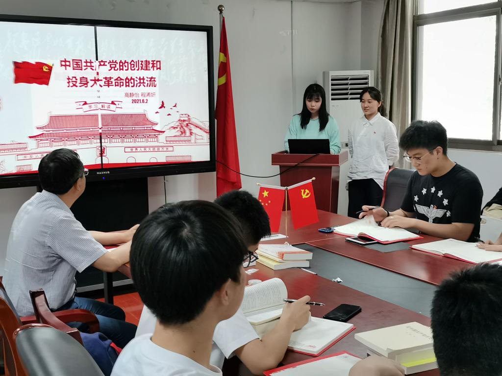 本科生第三党支部集中开展学习新民主主义革命时期党史主题党日活动,学院党委委员徐经忠老师、党支部指导老师葛海涛全程参与旁听与指导。主题活动由程浠妍和高静怡两位党支部新发展党员主持活动并进行党史授课,第三党支部全体成员(含预备党员)参加活动。在授课中,全体党员通过课件重温学习“大革命”时期、“土地革命”时期、“抗日战争”时期、“解放战争”时期等四个历史时期的内容,深刻领会党领导人民经过浴血奋战,完成民族独立和人民解放的历史任务,建立中华人民共和国,实现中国从几千年封建专制政治向人民民主的伟大飞跃。第三支部全体党员通过学习新民主主义革命时期历史,进一步做到学史明理、学史增信、学史崇德、学史力行,增强“四个意识”、坚定“四个自信”、做到“两个维护”,不断提高政治判断力、政治领悟力、政治执行力,为全面建设社会主义现代化国家、实现中华民族伟大复兴中国梦而不懈奋斗。接下来,支部进行了党史知识竞答活动,成员们积极参与,热情度很高,现场气氛活跃。
