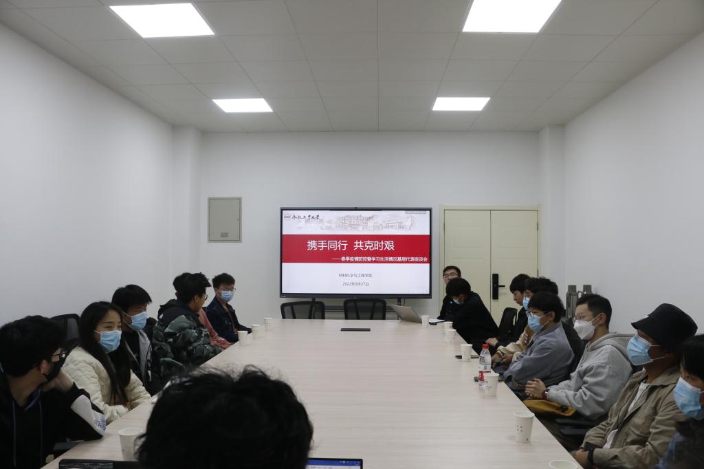 在翡翠湖校区综合楼317会议室召开“携手同行,共克时艰”春季疫情防控暨学习生活情况座谈会,学院20级、21级辅导员及各班级学生代表参加座谈会。