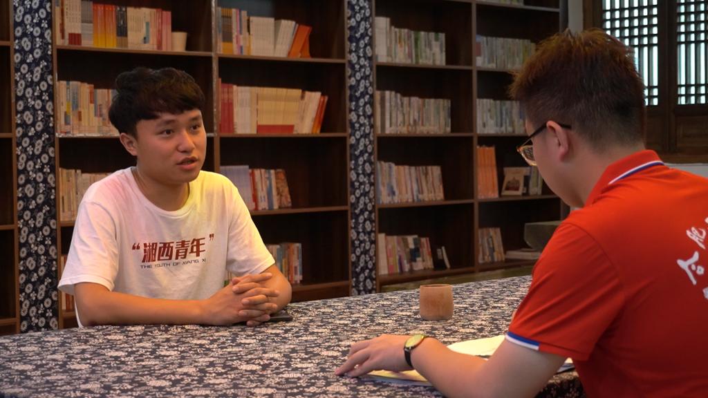 团队还对十八洞村村团支部书记施康同志进行了采访,作为大学生村官的施康,从多方面深入分析了十八洞村的过去、现在、将来,他表示十八洞村将继续深入推进习近平总书记提出的因地制宜的方针,发展特色产业、民族产业,持续推进经济建设与文化建设共同走向深远。采访中,施康向团队成员介绍了十八洞村目前采取的“飞地”模式:十八洞村结合当地地形地貌以及周边产业,在相邻村镇开拓集体产业“飞地”,为农民增创增收,取得了显著成果。目前,当地出产的猕猴桃、水稻等农产品获得大批市场。同时,团队就脱贫攻坚与乡村振兴中的人物故事、典型事例进行了了解,挖掘模范人物,从十八洞村隆姓村民由“等靠要”到创业失败再到多产业发展的故事中,学习其愈挫愈勇、敢于创新的精神。施康在采访最后寄语广大青年,要踏实做事,紧密依靠团队力量、群众力量:“一个人可以走得更快,但一群人可以走的更远。”引发团队成员强烈共鸣。