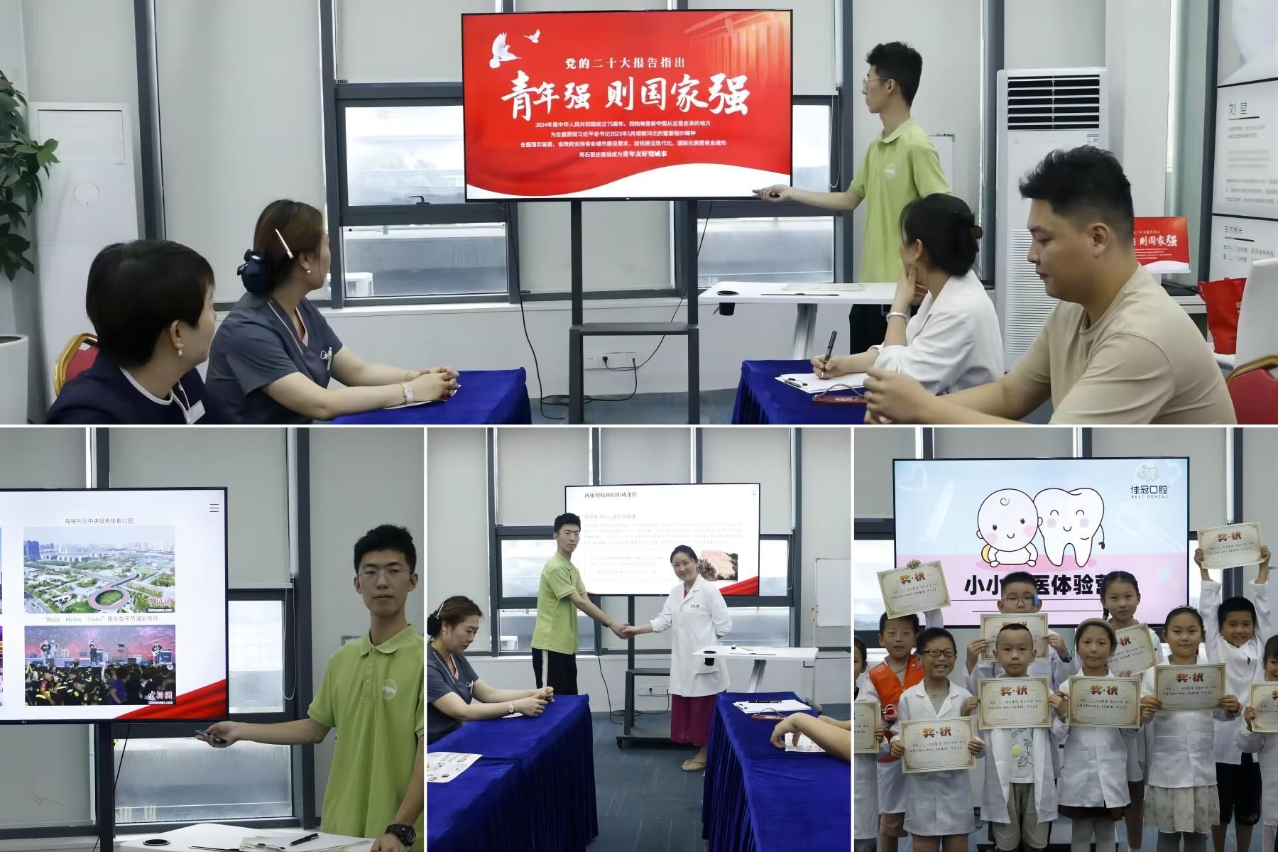 “砺材铸魂,青年赶考"薪火传承西柏坡精神志愿宣讲团赴合肥佳冠口腔医院开展宣讲活动。合肥佳冠口腔医院党支部全体成员参与。