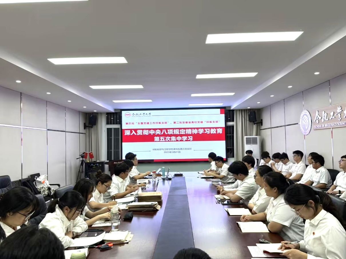 本科生第二党支部在屯溪路校区小红楼210召开了深入贯彻中央八项规定精神学习教育第五次集中学习暨2025年上半年接收预备党员支部大会。党支部相关负责人、全体党员40余人参加本次会议。大会由党支部副书记程振洋主持。