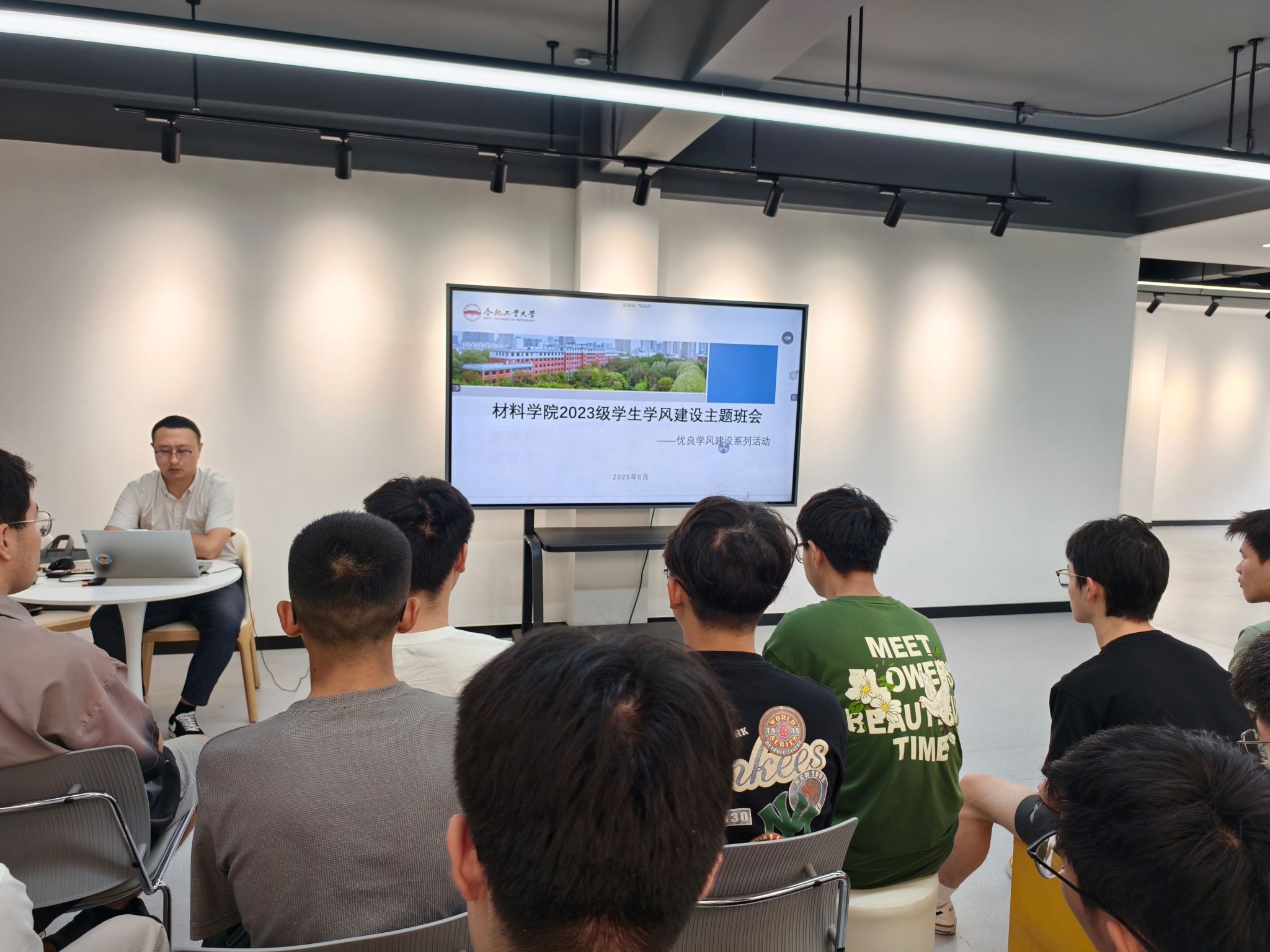 于翡翠湖校区四号楼学生社区沙龙空间召开2023级学风建设主题班会。学院相关负责人、材料物理专业23级全体同学参加本次班会。