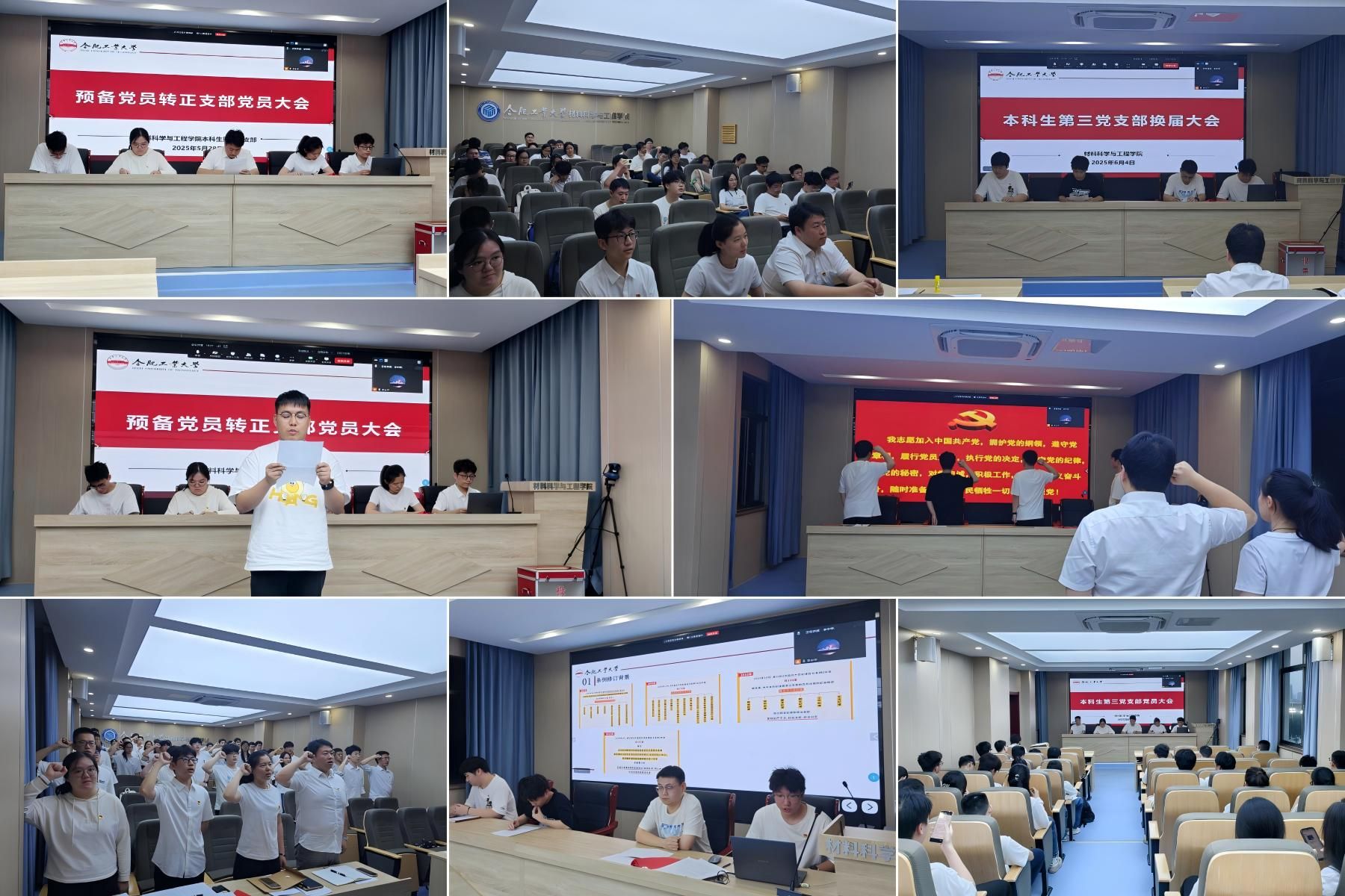 本科生第三党支部于屯溪路校区材料楼601召开了2025年上半年预备党员转正暨支委改选大会。支部全体党员50余人参会。