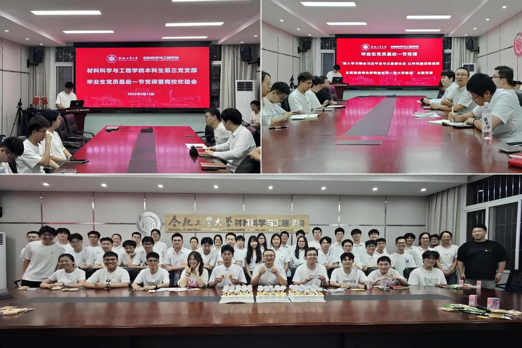 本科生第三党支部于屯溪路校区材料楼综合服务中心210会议室举办学院2025届毕业生党员最后一节党课暨离校欢送会。支部全体党员共50余人参与活动。