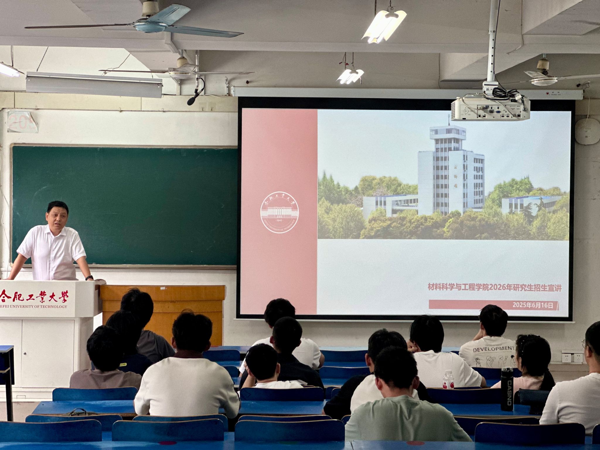在屯溪路校区西二教205室举办“‘材’华横溢,‘研’途可期”考研升学指导专题讲座。学院副院长周如龙教授作专题报告,2026届毕业生参加活动。