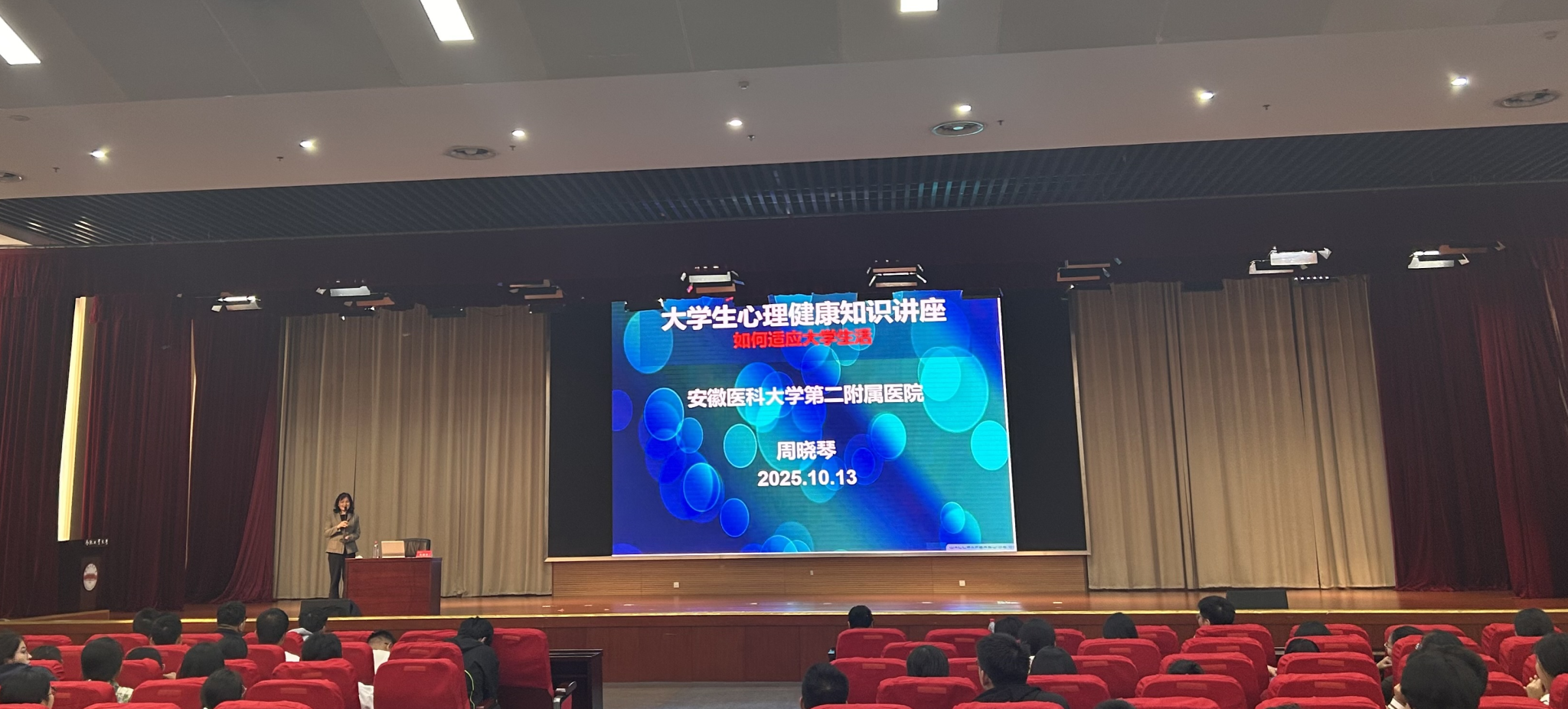 在翡翠科教楼二楼大报告厅开展大学生心理健康知识讲座。安徽医科大学第二附属医院周晓琴主任应邀作报告。独播库