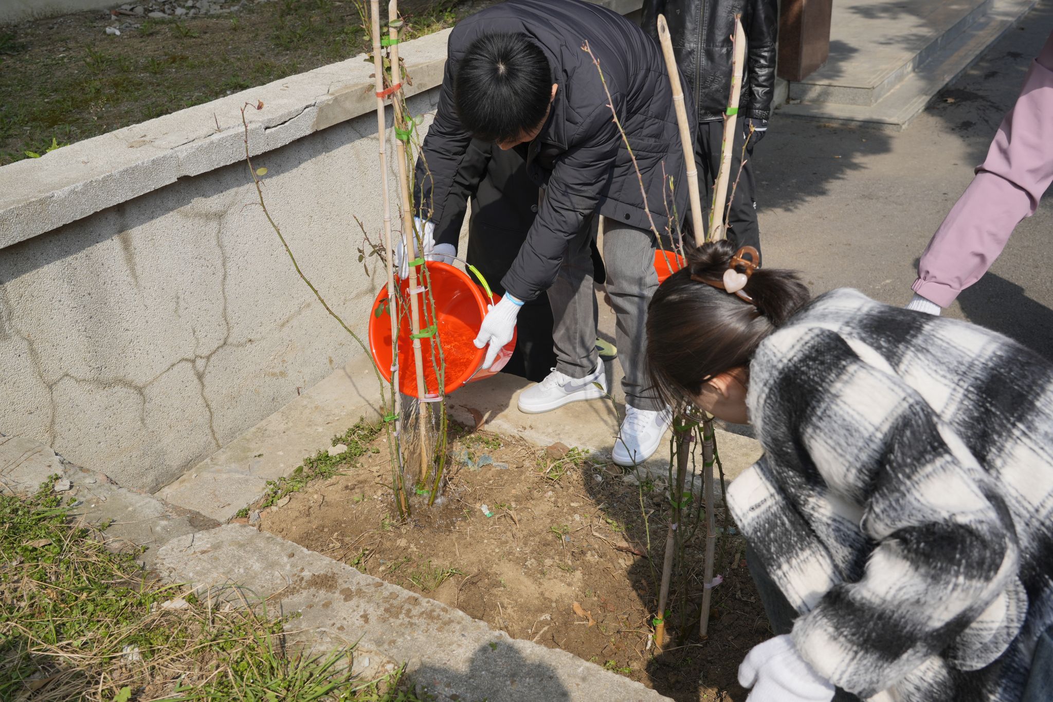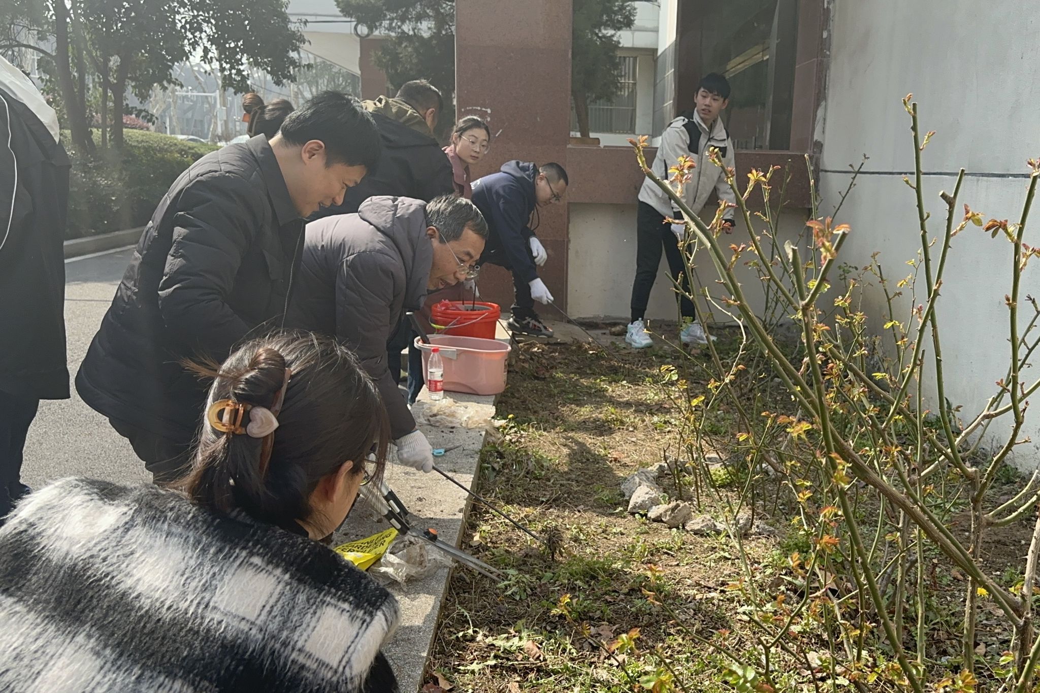 机关党支部和本科生第二党支部师生在材料楼花圃前共同开展了栽培月季的植树活动。学院党委相关负责人参加了植树活动。